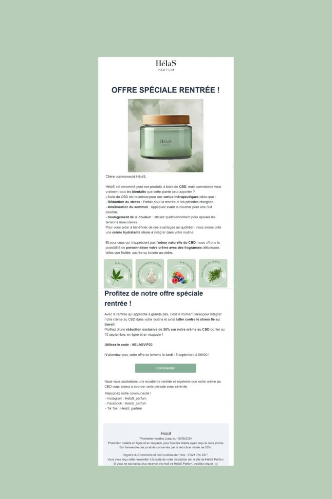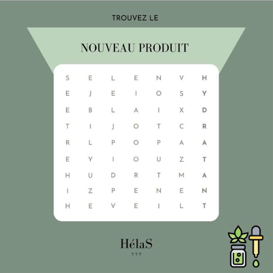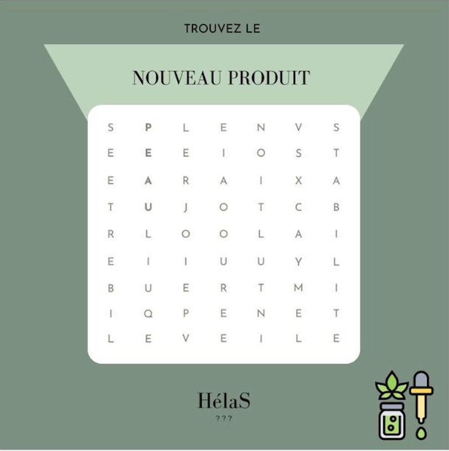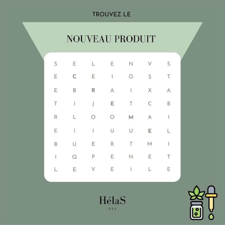 Avec les hashtags de la marque : #cbd #skincare #cosmetique #HelaS #bienfaitducbd #nouveauté #lancement