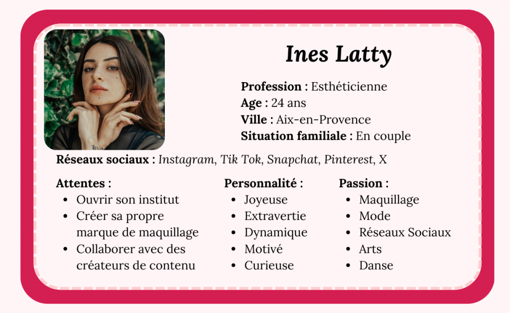 • Public principal : Jeunes femmes de 15 à 35 ans, utilisatrices actives de TikTok, Instagram et consommatrices de produits cosmétiques.