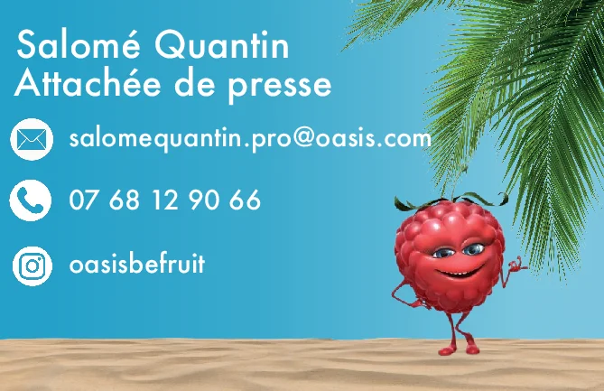 L’intégration éventuelle du logo et des éléments graphiques d’Oasis assure une continuité avec la charte graphique de la marque. Ces éléments permettent une reconnaissance immédiate.